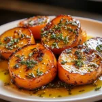 The tender, caramelized rounds of sweet potatoes glisten under the syrupy coating, making them not only a feast for the taste buds but also a visual delight.