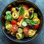 A refreshing dish combining tender cheese tortellini with fresh vegetables, perfect for warm days.